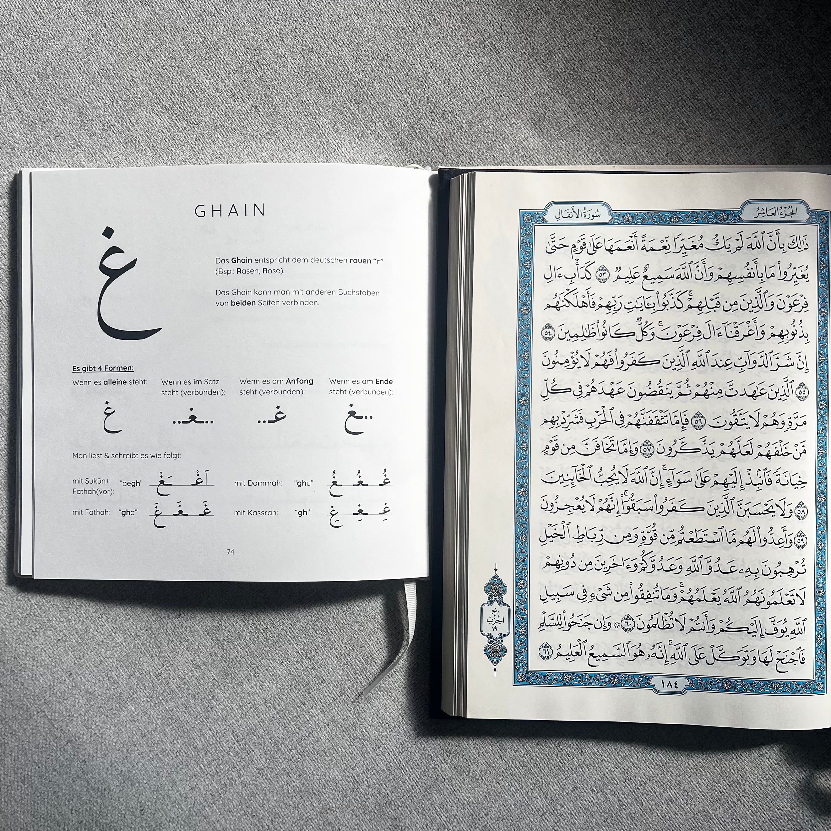 Schlicht, stilvoll und mit viel Liebe zum Detail gestaltet, begleitet dich dieses Buch auf deinem Weg, den Quran lesen zu lernen.